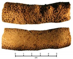 The white circles are cut ends of resin canals. Tapping into the resin canals allows the frankincense resin to drain out from the tree. This is Figure 2a from the article listed below. |