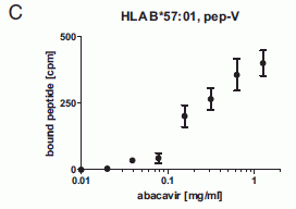 The graph shows that the amount of peptide bound to HLA increases as drug as added. No drug, no peptide bound. Add drug, and now the peptide is bound to HLA, where it could stimulate an immune reaction. The figure here is part of Figure 2 from the article. |