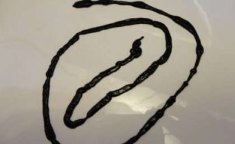 The worm is the bootlace worm, Lineus longissimus. It's a type of ribbon worm, a group that has not been studied much. It's very long. In fact, it is the longest known animal. The longest specimen known is about 55 meters (about 180 feet). That's nearly twice the length of the longest known whale. It's long enough to get you from the 15th floor. It's about a centimeter wide -- ribbon-like, indeed.