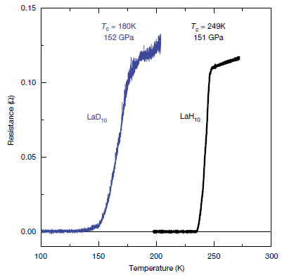 * Superconductivity in lanthanum hydride: a new temperature record (June 8, 2019).