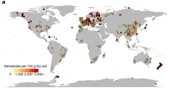 * News story accompanying the article: Ecology: Global maps of soil nematode worms. (N Eisenhauer & C A Guerra, Nature 572:187, August 8, 2019.)