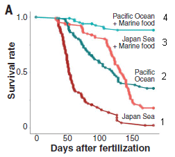 The figure shows the results from their samples. As before, there is a color code to show the worm density at each site. Note that the color code here is very different from the one in the top figure.