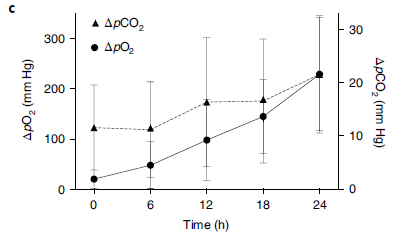 The graph shows that 24 hr connected to a pig improves the functioning of the lungs. There is much more data in the article, at various levels including histological, immunological and biochemical. The general conclusion holds.