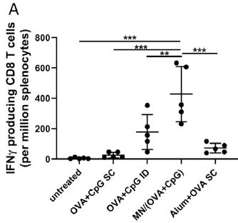 The results show that three of the four data sets are low; one is high. The high set is for the common mice following the injury. That is, the injury interfered with kidney function for the common mice (Ctrl vs IRI; blue), but not for the spiny mice (red). The measurements here were made at day 16 following the injury. This is Figure 8A from the article. |