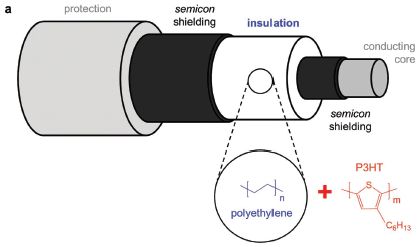 The article, which is open access: Repurposing Poly(3-hexylthiophene) as a Conductivity-Reducing Additive for Polyethylene-Based High-Voltage Insulation. (Amir Masoud Pourrahimi et al, Advanced Materials 33:2100714, July 8, 2021.)