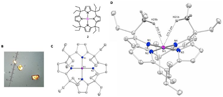 Chemists would normally think of the square-planar geometry as representing a high-energy transition state of Si during a reaction. The current work stabilizes that high-energy state in an isolable compound. Thus the work should open up new approaches to silicon chemistry.